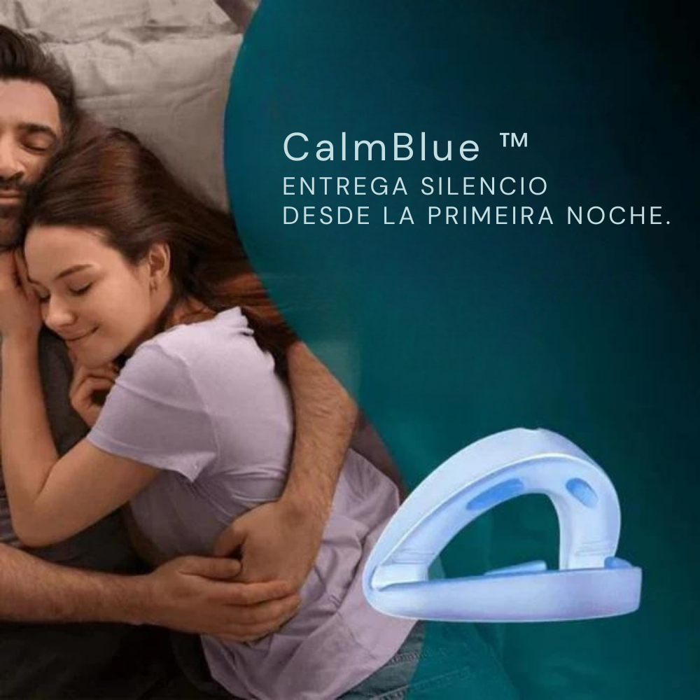 Un solo dispositivo resuelve dos problemas: ronquidos y bruxismo. Su diseño en silicona médica mantiene las vías respiratorias abiertas y protege los dientes del desgaste nocturno. Con CalmBlue™ usted duerme en silencio, su pareja también descansa y sus mañanas son libres de dolor y cansancio.
