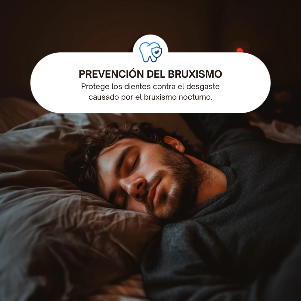 Protección nocturna contra el bruxismo – evita el rechinar y el apretar involuntario de los dientes mientras duermes, reduciendo el desgaste dental, la tensión en la mandíbula y los dolores de cabeza.